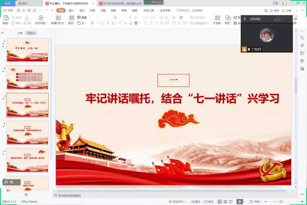 活动伊始,支部书记丁怡丹同志指出,总书记“七一”重要讲话精神为我校加快建设富有历史文化传承的中国特色世界一流大学指明了前进方向,并带领支部党员们观看总书记关于岳麓书院的重要讲话视频,共同重温了总书记对我们的热切关心与殷殷嘱托,支部党员无不倍感振奋,备受鼓舞,纷纷表示必定牢记嘱托,争创一流,绝不辜负总书记的关怀和期望。