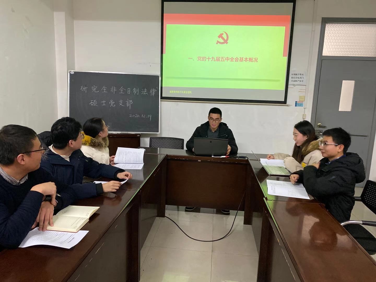 2020年10月26日至29日,党的十九届五中全会在北京举行,为深入学习十九届五中全会重要精神,研究生非全日制法律硕士党支部在学院上级党组织的指示下于2020年12月19日16:00-17:30在调教动漫