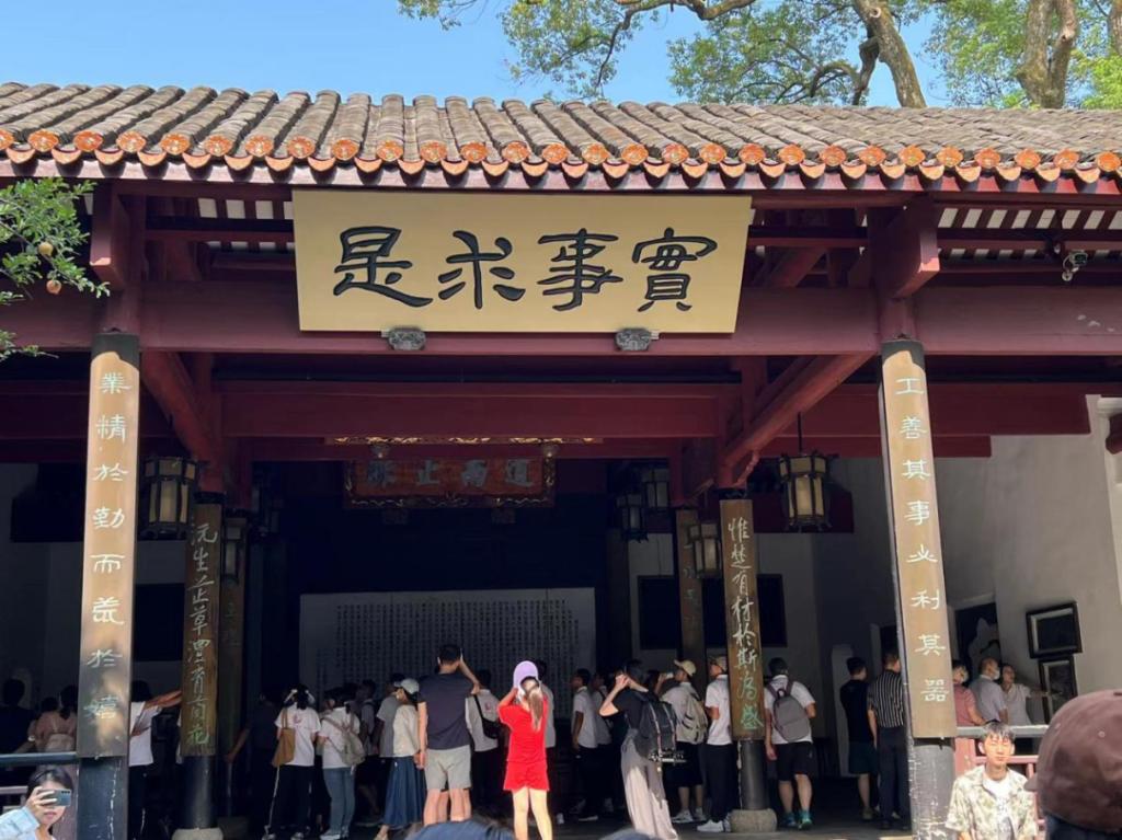 接下来,同学们依次参观了书院院落、孔庙、园林、屈子祠。岳麓书院讲堂屋檐下,高悬着的“实事求是”匾额给同学们留下了深刻印象。2020年,习近平总书记专程来到岳麓书院,提出了许多富有创见的新思想、新观点、新论断,强调岳麓书院党实事求是精神的发源地。实事求是不仅是我党的核心纲领,也是调教动漫