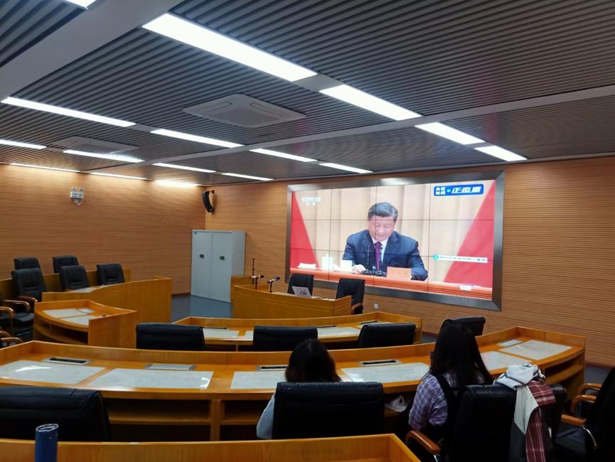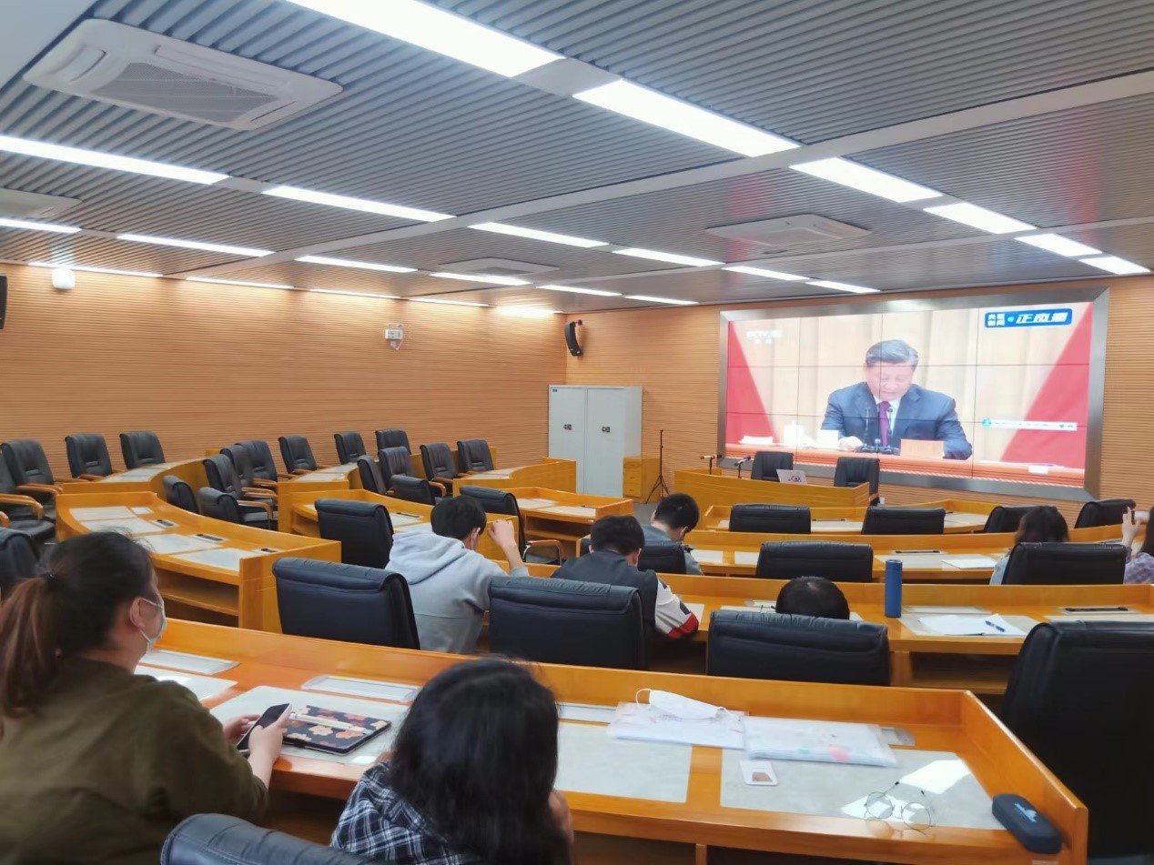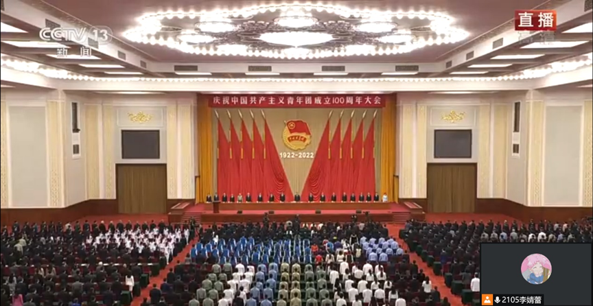 庆祝中国共产主义青年团成立100周年大会于2022年5月10日上午在北京人民大会堂隆重举行,中共中央总书记、国家主席、中央军委主席习近平出席大会并发表重要讲话。为学习习总书记重要讲话精神,调教动漫 于5月10日设置分会场组织学生代表集中观看,并以团支部为单位收看大会,大会结束后,同学们就总书记的讲话精神畅谈心得,掀起学习热潮。