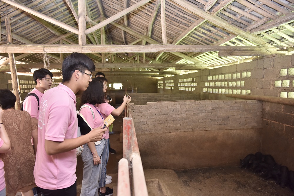 7月2日上午,团队到达三家馆乡。在与乡党委周琴书记亲切交流后,团队跟随农业技术站周文站长,前往晓村参观当地扶贫帮扶产业。在晓村,团队的同学们通过妇女主任周旭香的介绍,了解到当地养殖业的基本情况。乡政府因地制宜,充分发挥村干部的能动性,结合养殖产业基础优势与养殖文化优势,着手开发“斗牛场”等特色养殖旅游、创新家牲销售方式,助力乡村经济发展。随后,同学们前往晓村“养殖大户”,参观湘西黄牛、藏香猪养殖厂,并了解到在乡政府、村委会与村民的共同努力下,晓村养殖业飞速发展,已完成全村脱贫的目标。