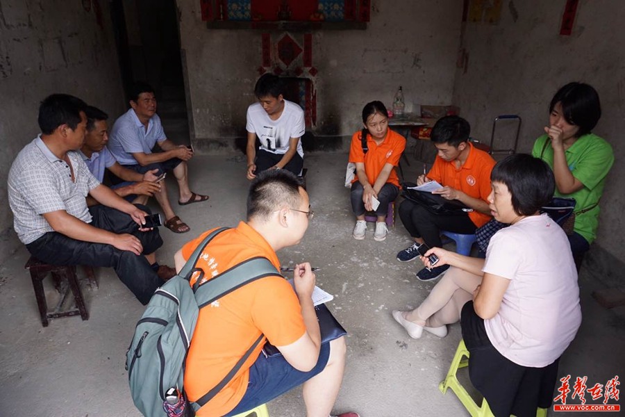 “情系脱贫攻坚”实践团第三组师生四人冒着酷暑深入洞口县大屋瑶族乡岩龙村。岩龙村是该县畜牧局的驻村帮扶点,实践团与该村村干部和驻村工作队简短交流后立即投入到紧张的社会实践与志愿服务活动中。