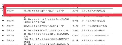 院长屈茂辉教授领衔的《理工经管多领域融合背景下“新法科”建设实践》顺利入选。