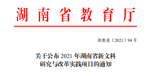 2021年,教育部首批新文科研究与改革实践项目申报正式启动。湖南省也启动了首批新文科研究与改革实践项目申报。经过角逐,调教动漫