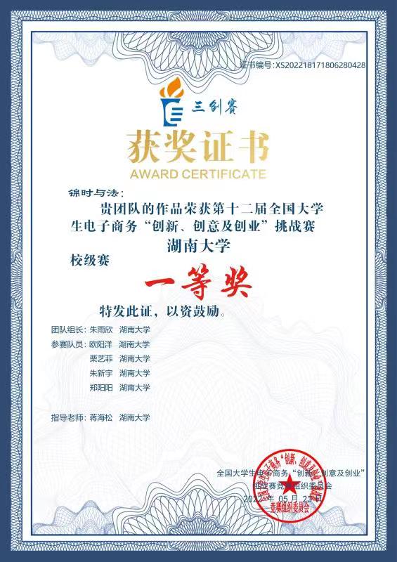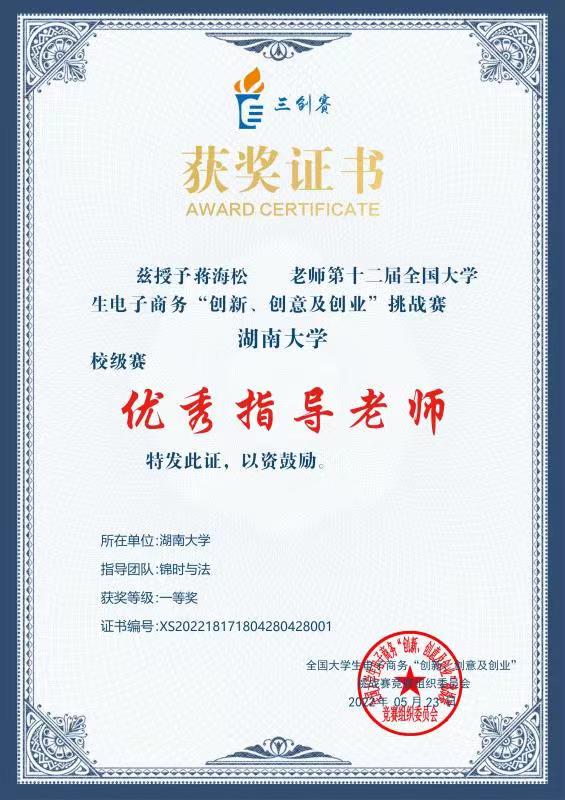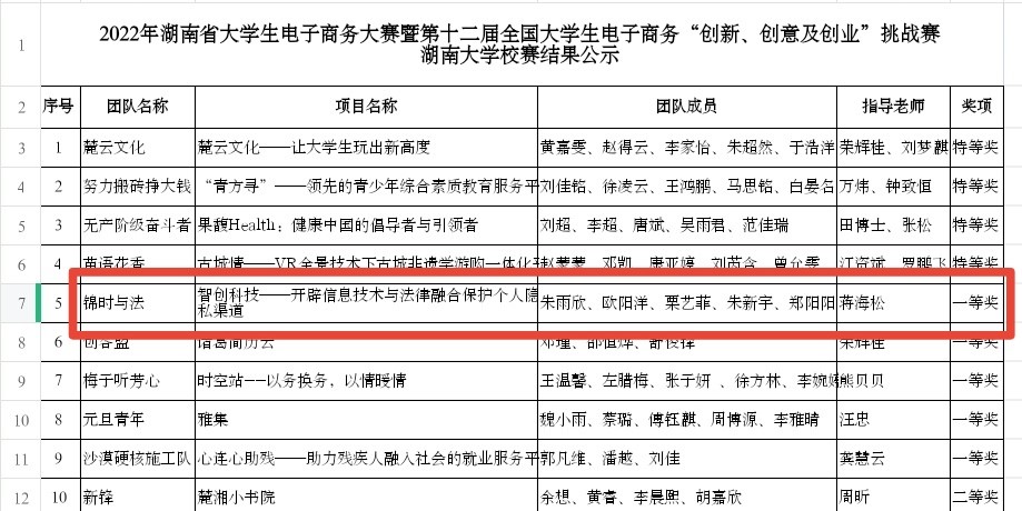 1905班朱雨欣同学主持申报、蒋海松老师指导的创新训练项目“智创科技——开辟信息技术与法律融合保护个人隐私渠道”获得校赛一等奖,蒋海松老师获校赛“优秀指导老师”称号。本次项目获奖,是调教动漫