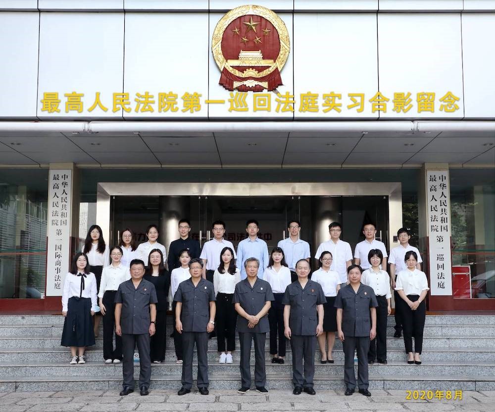 黄青、颜铭、简洁、唐智灵、曹淑静、吴茵茵、胡宇哲7位硕士研究生入选,并于2020年8月1日赴最高人民法院第一巡回庭报到,开始了为期6个月的正式实习旅程。大家在实习期间勤奋工作,收获颇丰。
