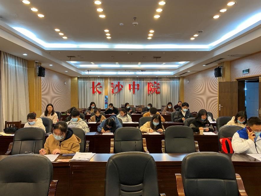 蒋海松副院长做实习动员。他首先感谢长沙市中院和各家对口法院在疫情防控的背景下,仍然敢于担当,为湖大毕业生提供实习岗位,这是极其难得的机会。蒋老师嘱托同学们珍惜机遇,把握机会,认真学习、熟悉法院的审判流程,把理论与实务结合起来。同时,务必遵守法院纪律,从踏入法院大门的那一刻起,就要转换身份,时刻以法院人的身份严格要求自己。蒋老师也建议大家不要只停留在应付日常工作的层面,要有深度,主动思考,主动学习,带着问题意识实习,在实习中发现和解决问题。他以电影《见习律师》、青年李克强及诸多知名法律人士的实习故事为例,寄语实习同学们在实习岗位上大展光彩,做出成绩。