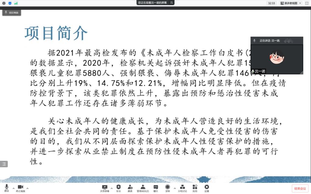 (“从业禁止制度在未成年人性侵害保护中的适用”项目答辩 负责人:沈一诺)