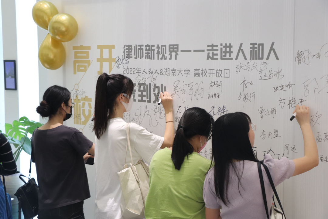 人和人律师事务所高度重视本次活动,董事局主席江帆率领工作人员不仅为迎接湖大学子参访制作了特别视频,还制定了详细周密的活动方案。本次活动主要分为两个环节:参观律所大厦;开展“律师新视界,走进人和人”分享交流会,由优秀律师代表和律所创始人介绍人和人律所的历史、现状和未来,分享律师职业经验,解答同学们的职业困惑。