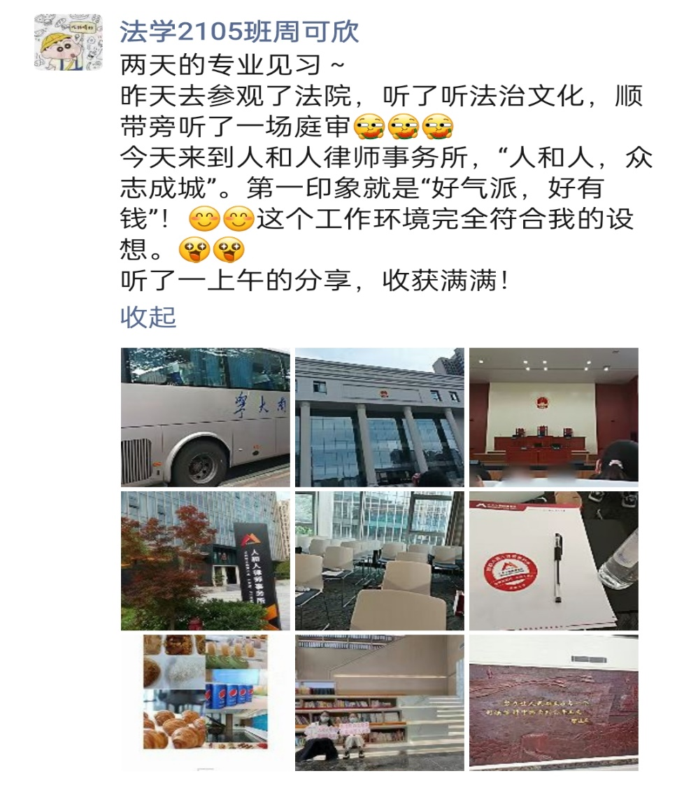 于2022年6月24日上午,组织2021级本科生和研究生参访人和人律师事务所。本次活动由王红兵老师带队。