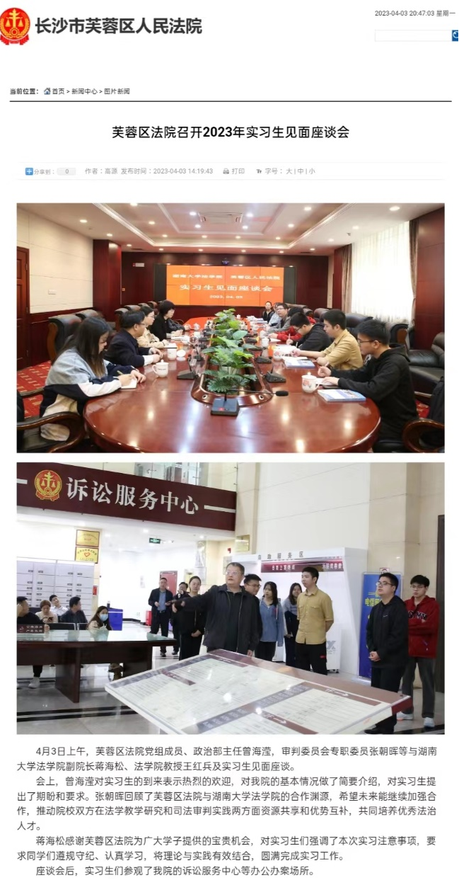 芙蓉区人民法院还专门为同学们的到来刊发了官方报道。