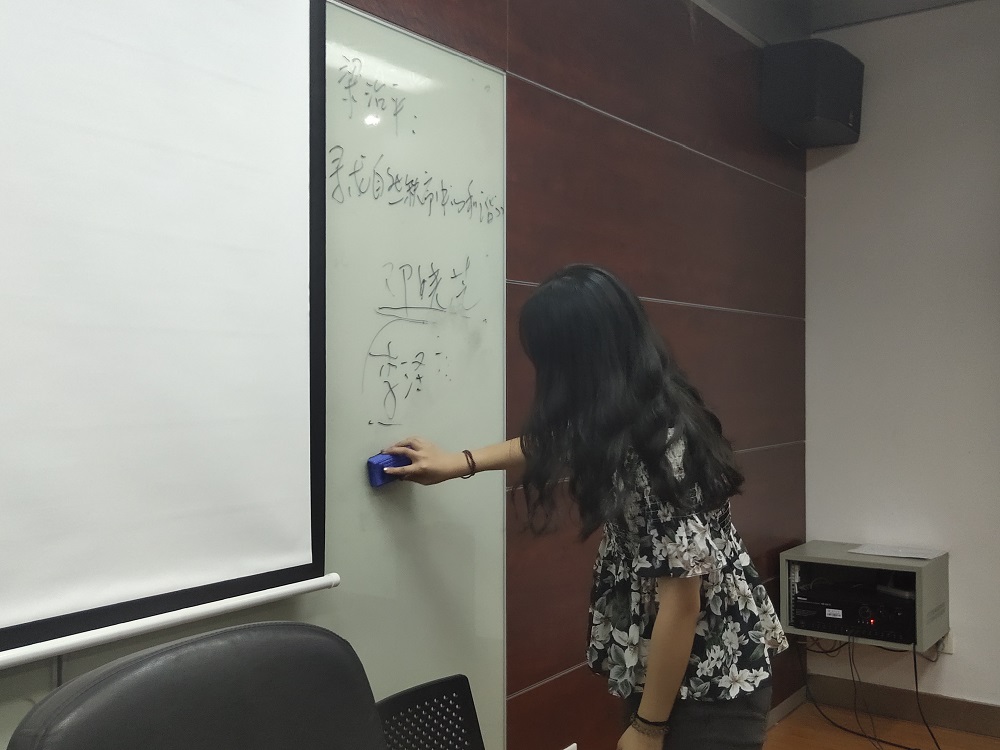 由于模拟法庭和报告厅日常使用频繁,室内地面较脏,同学们的重点是清扫地面垃圾,在这同时,他们还将座位间残留的纸屑、水瓶等杂物一一清除,面对一些平时不常使用导致积灰的地方,女同学们用抹布仔细清扫,直到一尘不染。