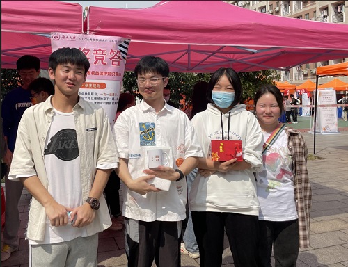中性笔、湖大明信片等奖品被同学们收入囊中,许多同学还与现场的志愿者们合影留念。
