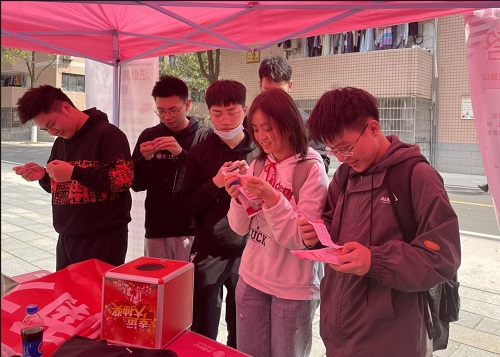 志愿者们向路过的同学们分发宣传册,并向他们介绍有关消费者权益保护的相关知识,吸引同学们参与到活动中来。