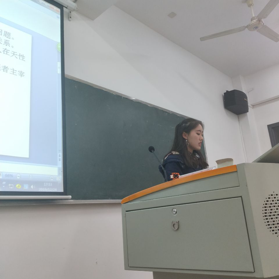 围绕社会契约论模式下人民主权的合理性进行讨论,1905班陈佳乐同学从自然状态向社会状态转变的必要性论述人民主权在卢梭的社會契約的理论中的起源,而后针对卢梭所述主权者和立法者间存在偏差的问题展开,对其理论中主权者与“公意无谬误”的立法者以及高明的人民“教育者”作一定比较与思考。