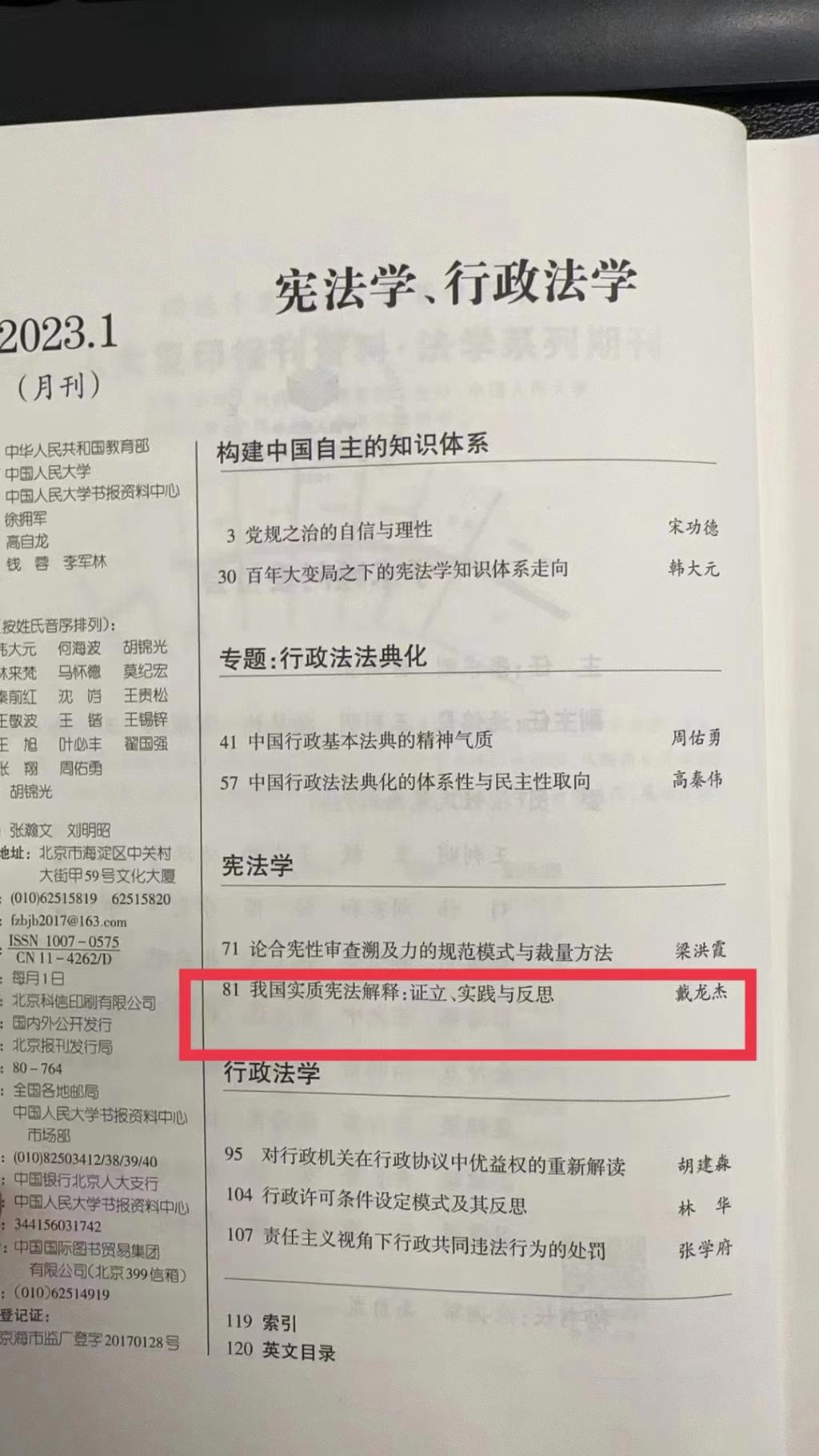 近日,华东政法大学法律学院宪法学与行政法学博士研究生戴龙杰发表于《湖湘法学评论》2022年第3期(总第5期)的学术论文《我国实质宪法解释:证立、实践与反思》被中国人民大学书报资料中心复印报刊资料《宪法学、行政法学》2023年第1期全文转载,这体现了《湖湘法学评论》办刊水平进一步获得学界认同,取得显著进步。