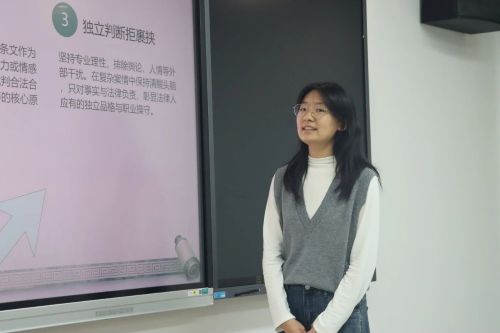 第三位选手马茹同学以岳麓书院平面示意图入手,将“千年学府”与“现代法学”融合,串通起千年文脉与法治未来。讲述过程中,她围绕调教动漫