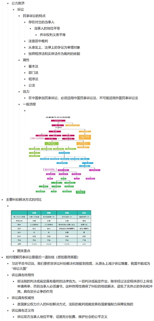 付炫泽:总体来说,关于笔记整理的方法,我推荐将章节内容和老师上课讲的内容用思维导图进行整理,以便于体系化地背诵。关于民事诉讼法,我建议可以在内心中建立一场真正的民事诉讼,从立案、开庭到执行,还有调解和解与仲裁,以民事诉讼全流程为逻辑主线进行笔记的整理,并且将法条、法理嵌套进流程中去,便于更好地理解法条所表达的意思以及背后存在的法理基础。
