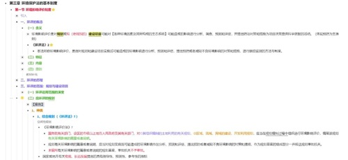 孙方怡:环境法需要理解和记忆的点很多,学习起来可能较为艰难且略感繁杂,因此建议紧跟老师思路,及时记录。对于环境法的笔记的记录,我有以下几点建议:首先,在课堂上紧跟老师思路,及时梳理PPT的标题,这样便于搭建框架。其次,课后及时对笔记进行补充,补充的时候可以注意以下几点:老师强调部分用荧光色重点标注,考点一般都在这里;将具体法条标注在笔记上,这样可以促进理解,由于环境法法条繁多,标注时可以缩小字号,尤其是对于每年新修订的法条最好及时更正以保证笔记可以在考试复习时发挥作用;建议大家对PPT上未展示的、老师口述的内容进行归纳总结,这可以为后续做题打下基础。考试之前,在对笔记进行整体复习后可以根据每节的大标题进行重点复习。大的方面即概述、原则和基本制度,小的方面则根据每节的板块进行细分,这样可以在脑海中形成体系,做题时能更好地调动知识。与此同时,也要注重总体与细节,原则和制度的联系。