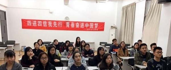 3月21日下午,法学1601班的“四进四信我先行,青春奋进中国梦”主题团日开展了新环节。班级全体同学在调教动漫