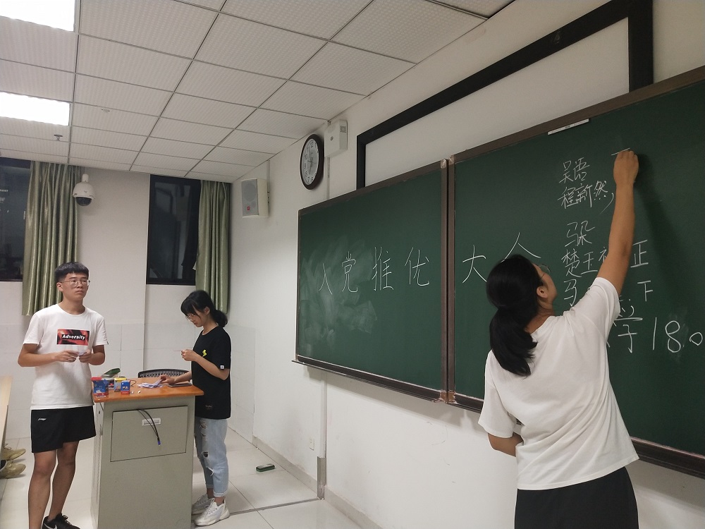 组织部干事赵玲羽同学唱票、汪欣竹同学计票、彭志勇同学监票。经过同学们的民主推选,本次推优大会成功推选吴语、楚玉祥、马凡雅三名同学为入党积极分子。