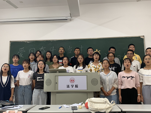 为热烈庆祝中华人民共和国成立70周年,营造爱国爱校的浓厚氛围,引导班级同学牢记青年使命,勇担社会重任,9月26日上午,法学1903班全体同学在调教动漫