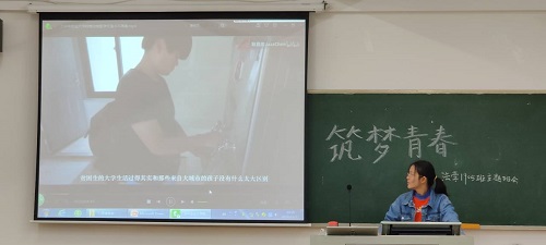 班会伊始,班长王涵首先通过播放短片,让同学们了解同龄人的优秀事迹,从身边榜样的经历中汲取力量。结合近期发布的调教动漫