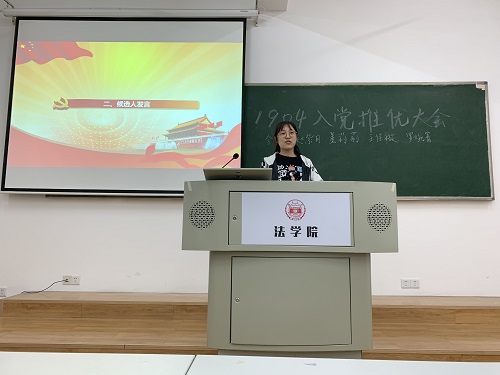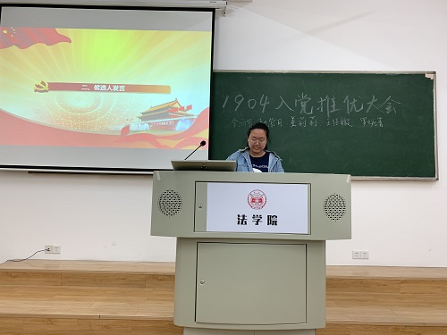 303教室召开入党推优大会。法学1904班全体同学参加大会,推优全程由组织部金博涵同学进行监督。