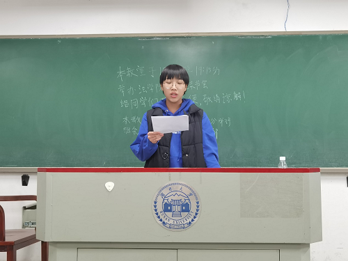 读书分享环节结束后,主持人李子韩对本次联合读书会进行总结,一方面对分享小组的同学们表现给予了赞赏,另一方面又指出了此次朗诵会的不足之处,如分享内容应当包括透过小说探寻到背后隐喻的法律思想,对于小说的评价还可以做出学术性的延申。