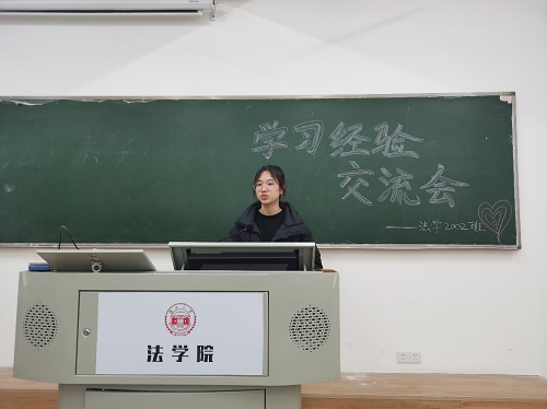 303教室召开“学习交流”主题班会,喻涛滔学长、程度佳学姐、金博涵学长以及法学2002班全体同学参与此次班会。