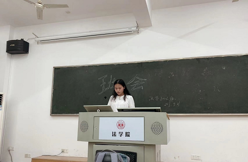 随后进入会议的第二个环节,由成绩排名前五的同学分享自己的学习心得。魏鑫鹏同学根据老师的上课方式,将课程分成三类,并针对这三类,分别展示了自己的学习方法。此外,魏鑫鹏特别指出案例研习的重要性,研习案例有利于同学们更加深入理解并记忆知识点。陈翔宇同学从理想信念的明确与坚定、对学习战略的重视与规划两个方面分享自身的学习理念。肖凌静同学则和大家交流了关于课前预习和期末备考的经验:“第一个是课前预习,我们可以在上课前花点时间进预习,对老师要讲的内容有个大致的了解,上课时就不至于太过迷茫,其次,老师在上课时提到一些我们不能理解的内容,我们可以先写下来,课后在询问老师;第二个方面是期末备考,期末备考的时候我们可以将所学习的知识体系化,方便理解记忆,我们还可以进行对比记忆,以加深印象。”最后,胡嘉雯同学和王欣悦同学都重点提及了调整学习心态的重要性。不要抱着功利的目的去学习,而要保持“但问耕耘,不问收获”的心态,踏踏实实学习,减轻学习的包袱。