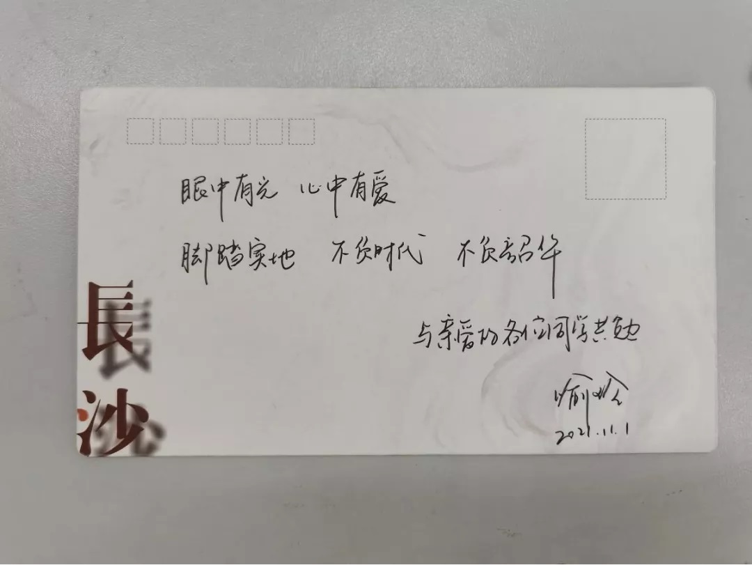 很快,班会进程来到第四项:以梦为马,不负韶华。全体同学将写上了自己梦想的明信片放入时空胶囊保存,并在签名墙上签下自己的名字,两位老师作为见证人也一同签名并分别写下了对同学们的期许。