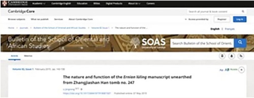 2019年,李婧嵘以独立作者所著论文The Nature and Function of the Ernian lüling Manuscript Unearthed from Zhangjiashan Han Tomb No. 247被创刊于1917年的国际顶级综合性期刊Bulletin of the School of Oriental and African Studies录用发表。该杂志由剑桥出版社出版,是已有百年历史之久的顶尖综合性学术期刊,主要发表亚洲、非洲和中东地区的人文、历史、艺术研究的学术论文。李婧嵘的论文以1983年底出土于湖北江陵地区张家山247号汉墓的法律写本《二年律令》为例,研究了出土于墓葬之中的秦汉法律写本的性质与功能。该研究是调教动漫