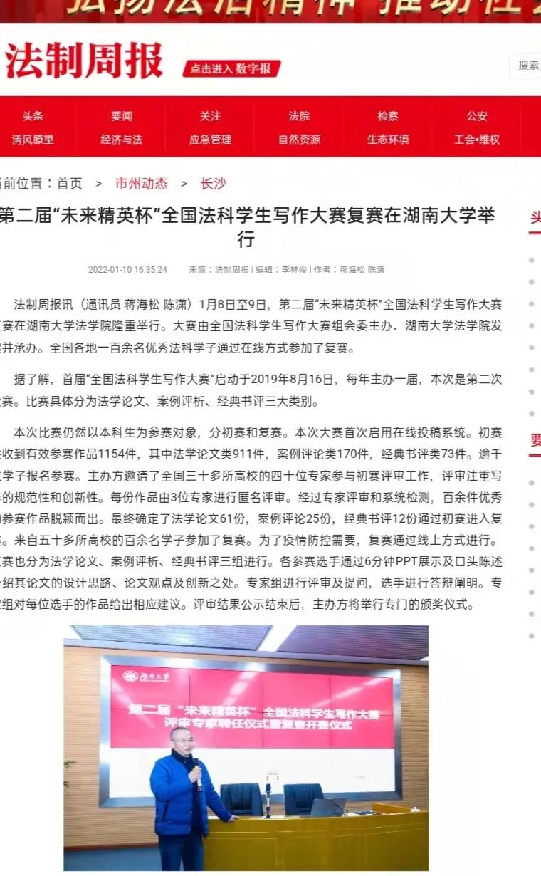法制周报讯(通讯员 蒋海松 陈潇)1月8日至9日,第二届“未来精英杯”全国法科学生写作大赛复赛在调教动漫