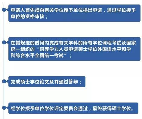 根据《中华人民共和国学位条例》的规定,具有研究生毕业同等学力的人员,都可以按照《国务院学位委员会关于授予具有研究生毕业同等学力人员硕士、博士学位的规定》的要求与办法,向学位授予单位提出申请。申请人通过了学位授予单位及国家组织的全部考试、并通过了学位论文答辩后,经审查达到了硕士学位学术水平者,可以获得硕士学位。