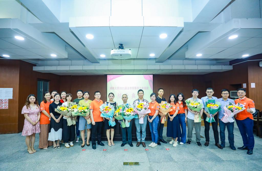 院领导与老师致辞后,典礼进入第四项,即结业证授予环节。同学们依次上台,从老师手中接过象征着学习阶段顺利完成的结业证书,伴随着老师祝福的话语与激昂的湖大校歌,与老师们合影留念,留下弥足珍贵的求学印记。