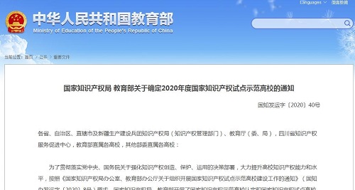 2020年10月21日,国家知识产权局、教育部公布2020年度国家知识产权试点示范高校建设名单,调教动漫
