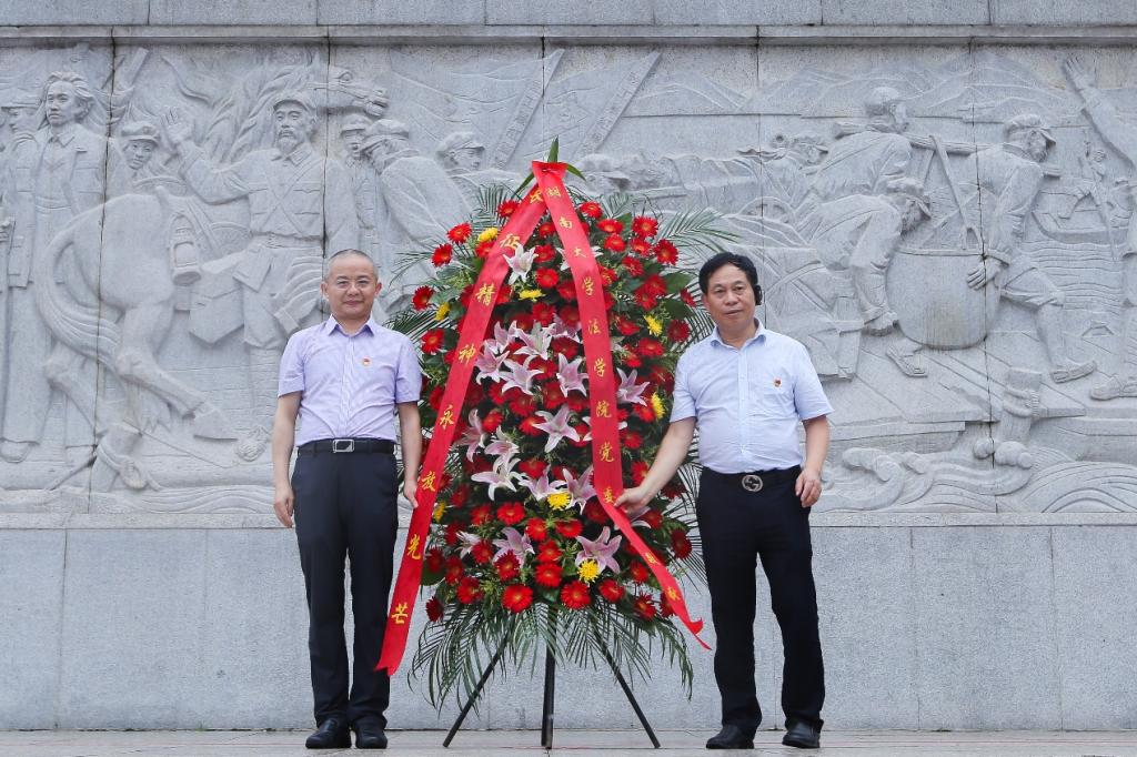 在中央红军长征出发纪念碑前,院党委书记易骆之、院长黎四奇代表调教动漫