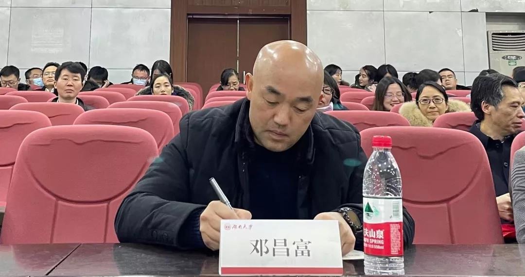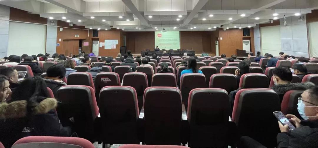 2021年12月28日下午,院党委书记易骆之在模拟法庭宣讲党的十九届六中全会精神,学校党史学习教育第三巡回指导组邓昌富副部长来院指导,学院全体教职工、学生党员代表参加。