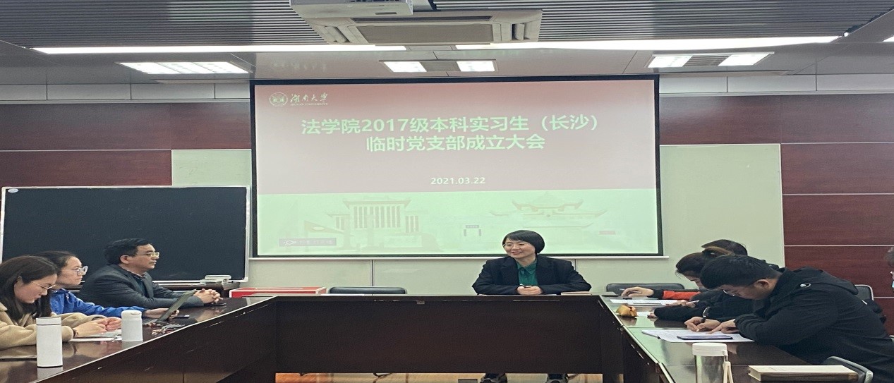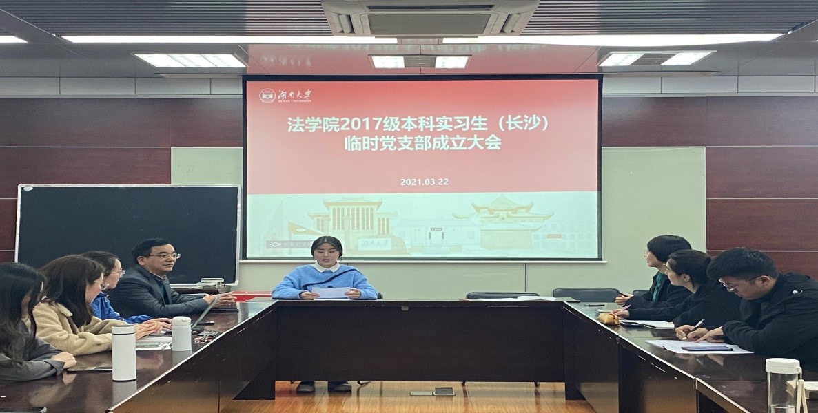 2021年3月22日晚,调教动漫 2017级本科实习生临时党支部成立大会在调教动漫 404会议室举行。会上,组织员马启明代表学院党委宣读了《关于成立2017级本科生实习临时党支部的通知》,长沙市中级人民法院实习生临时党支部、岳麓区人民法院实习生临时党支部、雨花区人民检察院实习生临时党支部、天心区人民法院实习生临时党支部四个实习生临时支部宣布成立。