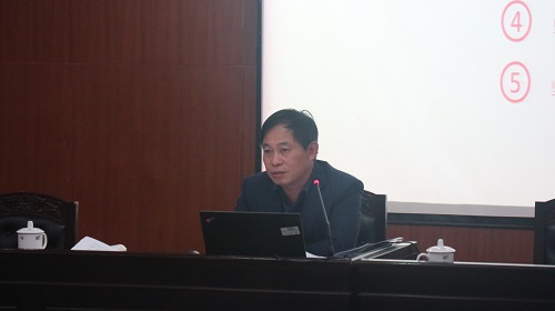 “全面依法治国是坚持和发展中国特色社会主义的本质要求和重要保障,事关党执政兴国,事关人民幸福安康,事关党和国家事业发展。习近平总书记指出,‘全面推进依法治国总目标是建设中国特色社会主义法治体系、建设社会主义法治国家’。这个总目标,既明确了全面推进依法治国的性质和方向,又突出了工作重点和总抓手,具有纲举目张的意义。”易骆之书记首先向在座师生介绍了他在学习《习近平新时代中国特色社会主义思想学习纲要》时的感悟与体会,并点明了“全面依法治国”在“四个全面”战略布局及习近平新时代中国特色社会主义思想中的重要地位与作用。易书记还通过联系十九届四中全会向师生们解释了“全面依法治国”战略的必要性与重要性,他指出,法治是推动经济社会发展的有效治理方式,也是我们党治国理政的基本方式。党的十九届四中全会提出坚持和完善中国特色社会主义法治体系,提高党依法治国、依法执政能力的明确要求。这为进一步推进全面依法治国、建设法治中国,在法治轨道上坚持和完善中国特色社会主义制度、推进国家治理体系和治理能力现代化指明了方向和路径。