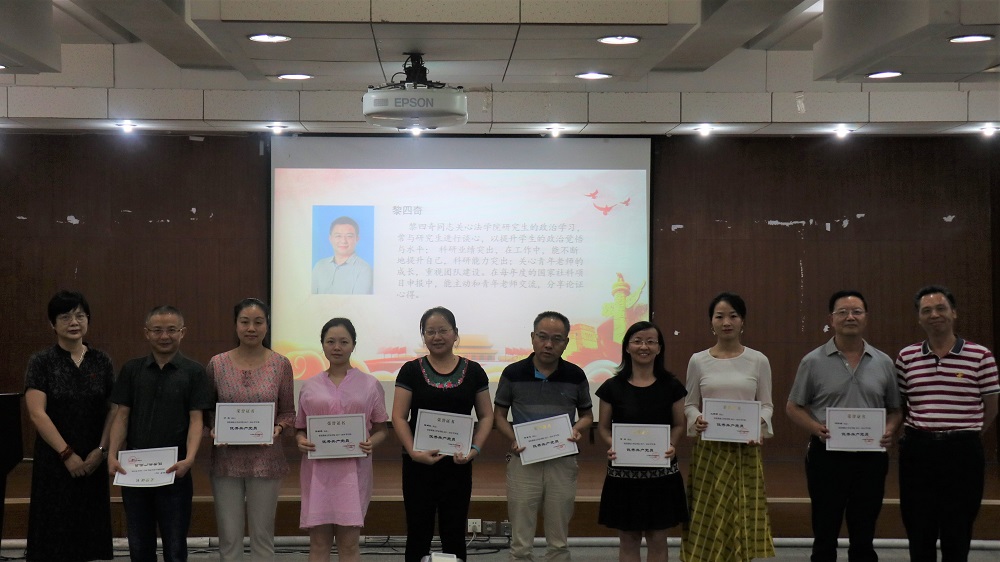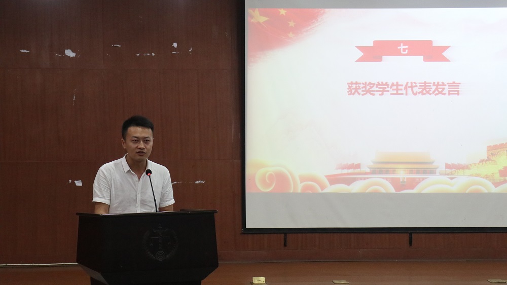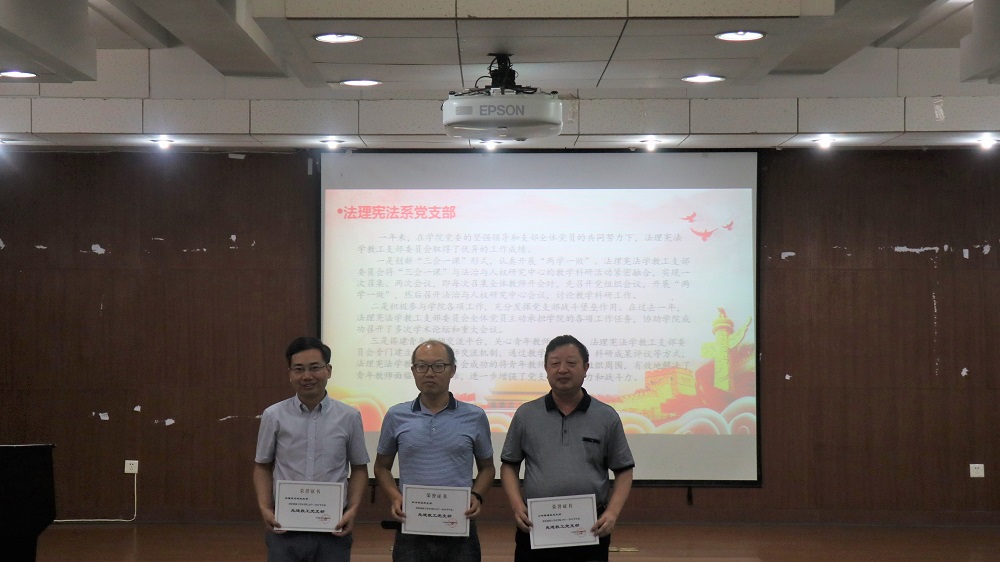 在大会表彰环节,屈院长宣读了表彰决定。教工公共管理系党支部等3个党支部被评为“先进教工党支部”,研究生2016级法学党支部等3个党支部被评为“先进学生党支部”,汪全军等3名同志被评为“教工优秀党支部书记”,方放、邓祥瑞、兰静静等11名同志被评为“优秀教职工党员”,汤文琪、杨凯等4名同志被评为“优秀学生党支部书记”,丁怡丹、牛欢等15名同志被评为“优秀学生党员”,刑法学党支部、行政党支部等5个支部的支部活动被评为“优秀组织生活创新实例”,王君蕊、王浩、何孟书等18名同学分获“不忘初心、牢记使命”主题征文一、二、三等奖,出席大会的各位领导为获奖的集体和个人颁发了荣誉证书。随后,受表彰的教工先进代表和学生先进代表作了发言,发言中他们总结了过去一年工作中的经验与教训,并对未来一年的工作做了简单规划。 “大学根本任务是对人的培养,要以人才培养为中心工作,提高人才培养的质量,在双一流建设中抓实根本,支部工作也要落到实处,要多思考怎么为学生服务、怎么为教学科研服务”,在党委委托下,屈院长回顾了调教动漫