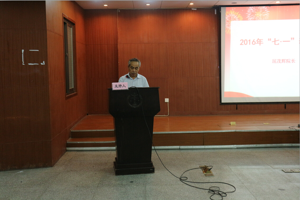 学院党委副书记付蓉芬同志主持会议,院党委书记李连友同志、院长屈茂辉同志以及各基层党支部书记出席了会议,同时参加大会的还有全体教工党员、学生党员代表、获得学院党委表彰的个人和先进集体代表以及部分入党积极分子代表等。